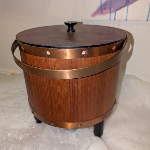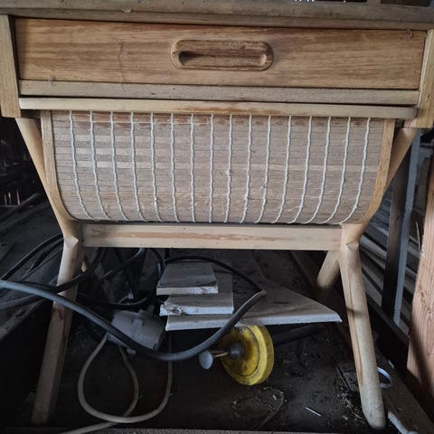 Et gammelt lite syskrin proppfullt av diverse utstyr, masse gamle