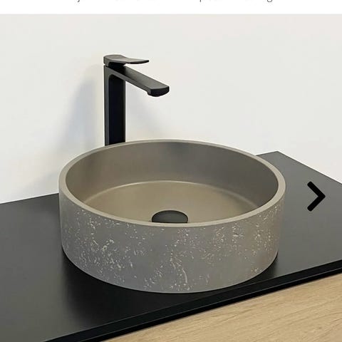 På bildene virker den grønn, men den plukker opp fargen på møbelet under. Push-up ventilen på bildet følger ikke med.