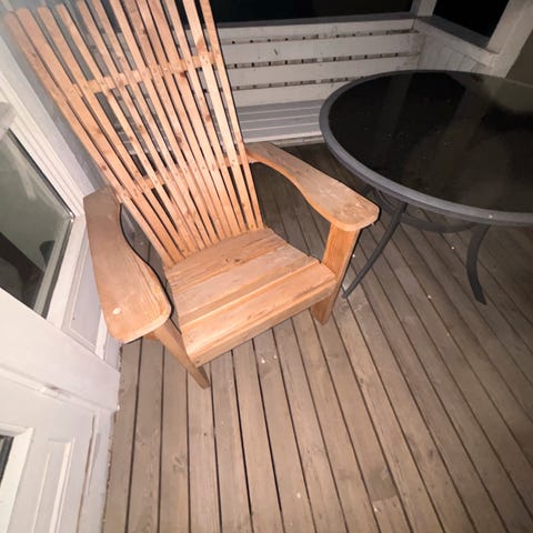 Slapp av og kos deg i hagen eller på terrassen med denne moderne og komfortable Adirondack-stolen med ottoman!