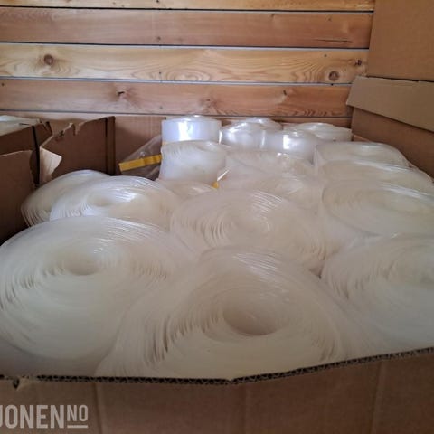 300 m2. Ny i kartonger, står på paller.Hver rull dekker 15m2.