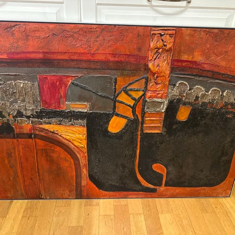 "Mums". Fra Madagaskar. Fibers, petals and leaves. Arranged on hand-made paper. "Mums", Lager 124. Hentes i Oslo eller sendes.