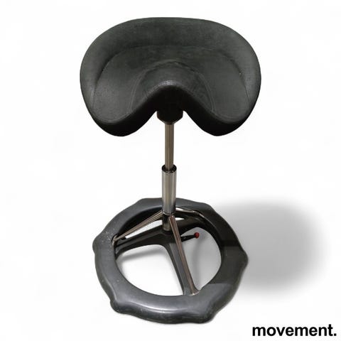 Stolen har et sadelformet sete og en justerbar “Magic Ball” som gir balanserende bevegelser, noe som aktiverer rygg- og magemuskulaturen mens du sitter. Med det integrerte hjulsettet får du økt fleksibilitet og enkel bevegelse rundt arbeidsplassen.
