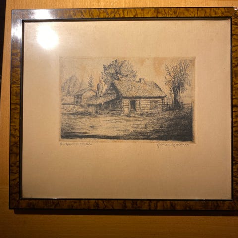 37 cm x 32 cm. Radering av Hallvard Storm. Hentes helst i Oslo. Kan sendes. Gateparti i Tønsberg. L10.