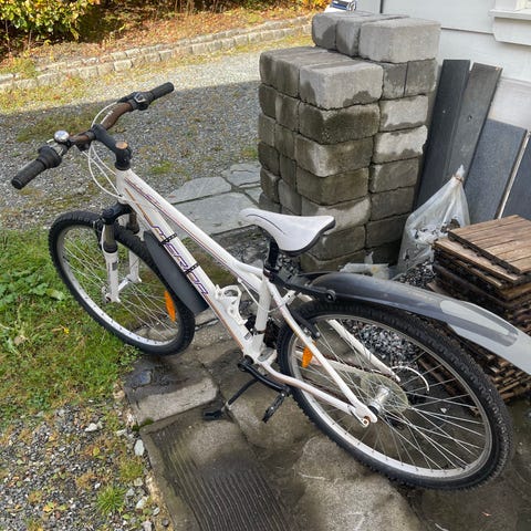 Sykkelen står hos Intersport Brotorvet, Stathelle.