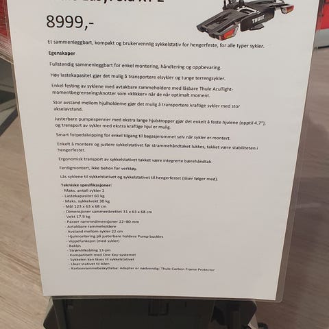 • Plass til 2 sykler – kan enkelt utvides til 3 med adapter