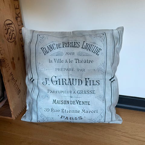 Str er 45x45 cm, trekket kan vaskes på 30 grader. Produsert av norske Br. Flaarønning.