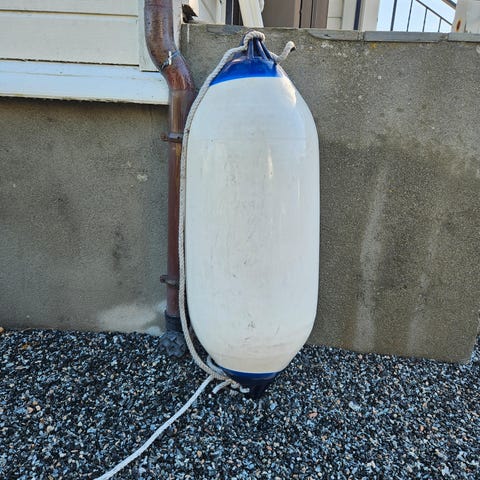 Hvit med blå topp. B vare med varierende blåfarge på topp og bunn fenderfeste.