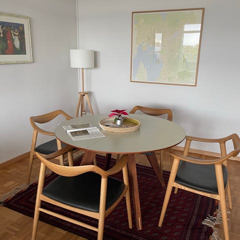 Rundt bord i bøk og stål