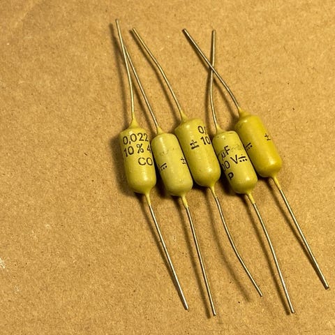 Proffkvalitet kondensatorer for tonekontroll i elgitar og elbass.