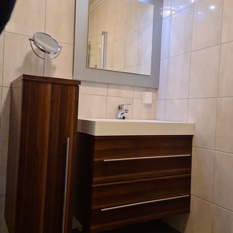 Perfekt til bad, vaskerom eller andre rom der du ønskjer praktisk oppbevaring med stilreint design.