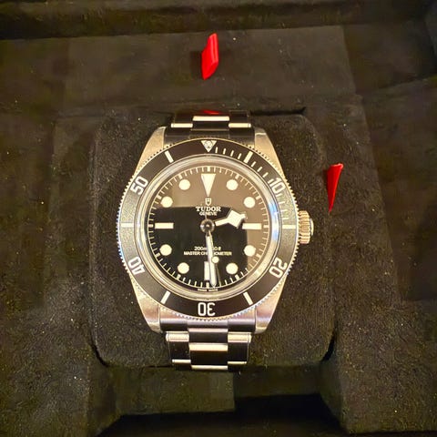 Tudor Pelagos er en skikkelig toolwatch. Med kasse og lenke i titan og en vanntetthet på hele 500 meter er dette er arbeidshest som takler det meste du kan kaste på den. Denne klokken er kjøpt ny i 2015 og kommer komplett med boks og papirer. Uret er i svært god stand og er nylig gjennomgått service hos Tudor-verksted.