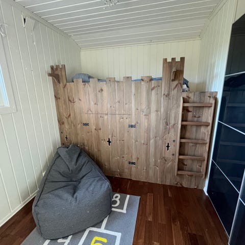 Ekstrasengen er 10 cm kortere enn hovedsengen og krever madrass på 90x190 (maks 8 cm tykkelse for enkel uttrekk)