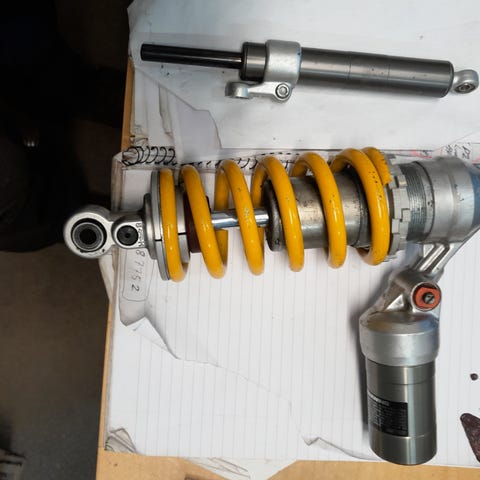 - Hjul fram og bak, komplett gaffel, bremseskiver, kalipere, ledningsnett, div el komponenter, instrumenter, tank, låsesett, bakdemper, eksos, radiator, baksving + div smådeler.