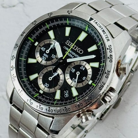 Seiko SND379P1 Chronografklokke for menn, quartz, stl, 100M, svart urskive, kompasskrans