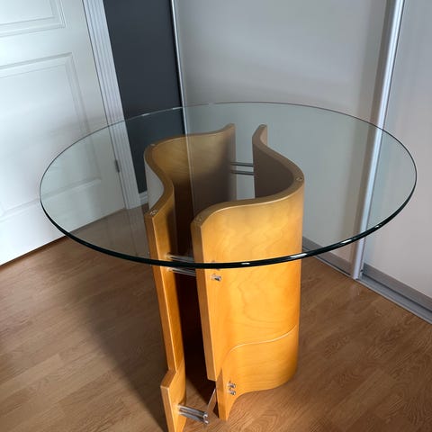Hylle under og glassplate over. Glassplaten kan tas av.