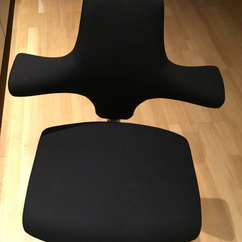 Saddle Chair - designet av Peter Opsvik: Setets form og mekanisme gjør at du sitter i balanse og kan enkelt lene deg fremover og bakover. Den gir Mulighet for bakover tilt sperring.