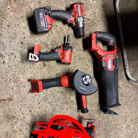Milwaukee verktøysett flere M18 maskiner 8.0Ah + 5.0Ah batteri selges som