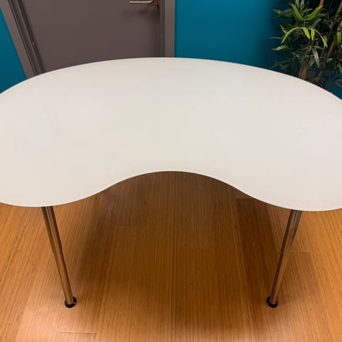 Produktbeskrivelse Et lite og fleksibelt sofabord med stilrent design. Bordet har en kvadratisk bordplate i slitesterkt laminat i eikefinerfarge, som skaper et varmt og innbydende uttrykk. Dette salongbordet er ideelt for både møterom og pauserom, og kan enkelt kombineres med andre bordhøyder for å skape en dynamisk atmosfære. Med dimensjoner på 700x700 mm og en høyde på 500 mm, gir dette bordet deg den perfekte plassen til å sette fra deg drikker eller materiell under møter. Spesifikasjoner Dimensjoner: 700 x 700 mm Finish/look bordplate: Eik Materiale bordplate: Laminat Understell: Stål, hvitt (RAL 9016) Form: Kvadratisk Vekt: 9 kg Tilstand Bordet er i utmerket tilstand med lite bruksslitasje Bærekraft hos Secundo Ved å investere i kvalitetsmøbler hos AJ Produkter, bidrar du til å redusere miljøbelastningen gjennom bærekraftig produksjon og langvarige produkter.