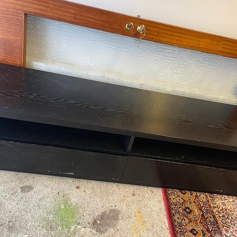 Denne klassiske TV-benken med dør er et praktisk og blikkfangende tillegg til innredningen.