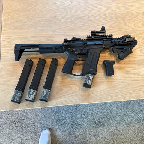 Fyll magasin med softgungass og 6mm BBs, sett magasinet i pistolen og ta ladegrep. Når magasinet er tomt låses sliden i bakre stilling. Smør magasin og bevegelige deler jevnlig med silikonspray for bedre driftssikkerhet.