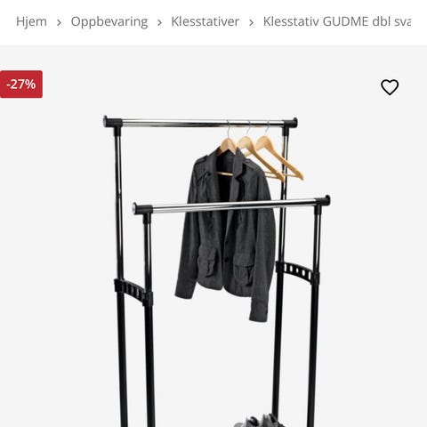 Produktbeskrivelse Praktisk og moderne CLASSIC garderobeskap med benkestativ, designet for effektiv oppbevaring. Dette garderobeskapet har ventilasjonshull, hattehylle og klesstang med to kroker, og dører med dørstopp ved 90 . Den medfølgende benken gir en praktisk sitteplass. Spesifikasjoner Bredde: 80 cm Høyde: 212 cm Dybde: 55 cm Farge: Svart Materiale: Stål Antall dører: 2 Antall seksjoner: 2 Følger med låsehasp Tilstand God tilstand. Synlige riper på store deler av skapet, men funker optimalt.