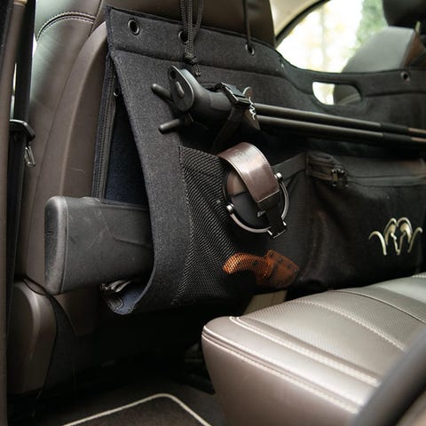 Futteralet kan enkelt festes på hodestøttene til forsetene ved hjelp av to hemper. Selv under humpete turer gjennom jaktterrenget eller kraftig oppbremsing, er våpenet alltid trygt og pålitelig oppbevart.