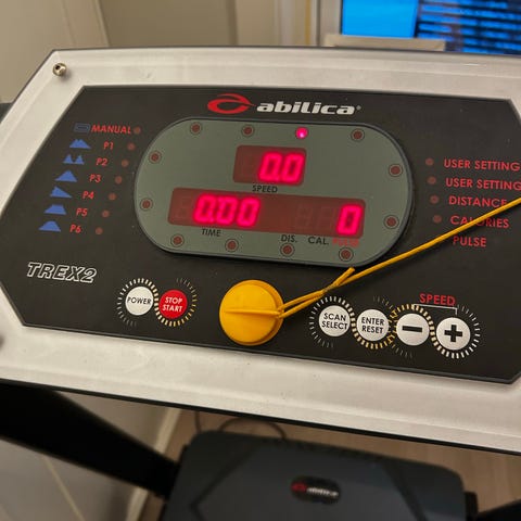Displayet viser data for: Hastighet, tid, distanse, kalorier