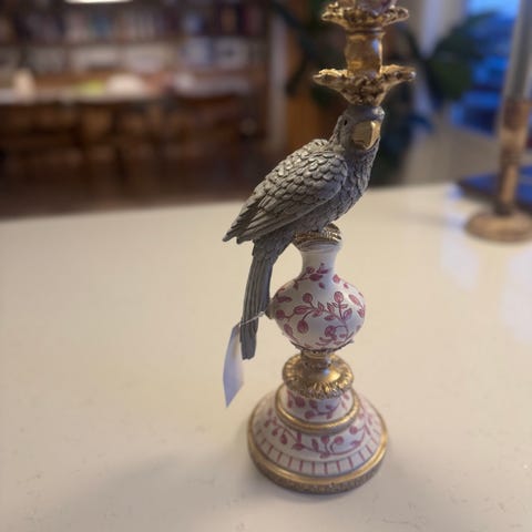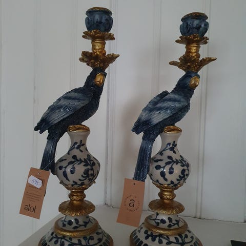 Likte du denne? Vi har også lampeføtter (to ulike) i samme serie og mye annet - importert fra fjern og nær :-) Vi har også denne lysestaken med blå fugl - like fin! Du finner den i nettbutikken.