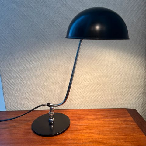 Orig8inal lampe. De har fått ny ledning og støpsel. Noen få riper på hatten. 23 cm. Påskrevet 9/6 80 under.