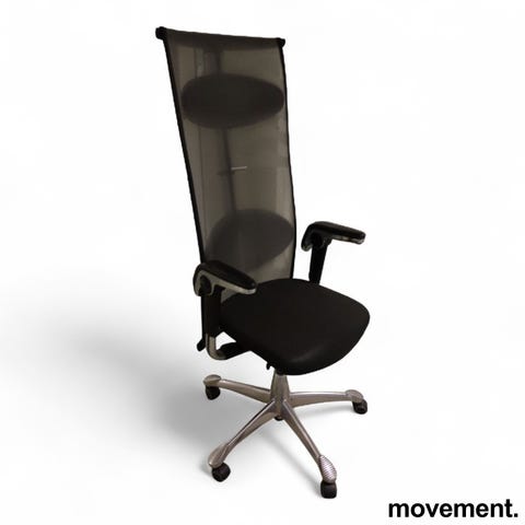 Stolen har en vippemekanisme som stimulerer til variert sittestilling gjennom hele arbeidsdagen. Den høye ryggen og integrerte nakkeputen gir god støtte til overkropp og nakke, og gjør den velegnet for lengre arbeidsøkter.