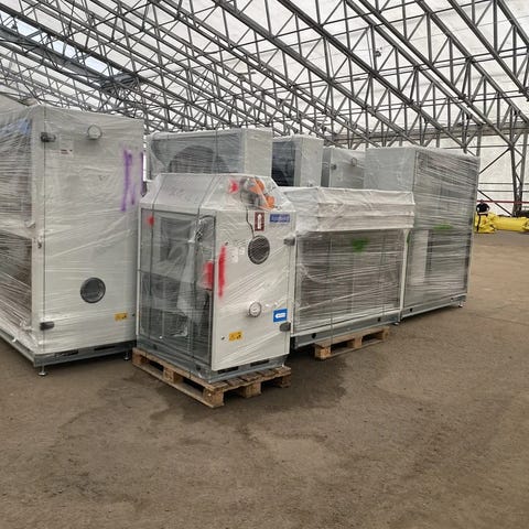 Aggregatene leveres med innvendige filterseksjoner og moduler, og egner seg godt for videre bruk i næringsbygg, industri eller større ventilasjonsanlegg.