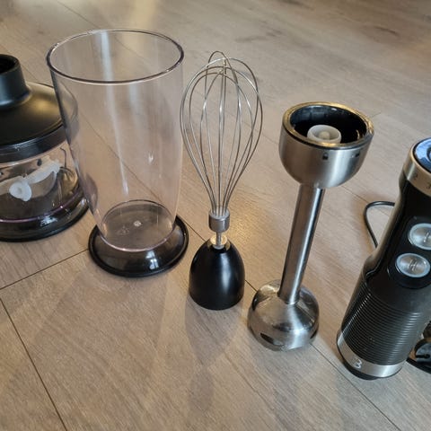 Alle tilbehørene til stavmikseren tåler oppvaskmaskin og er enkle å rengjøre