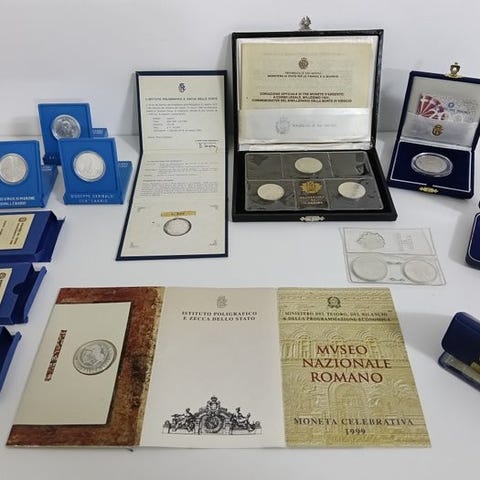 Bestr av 10 mynter. Inkludert 2 x 2 euro-kom.