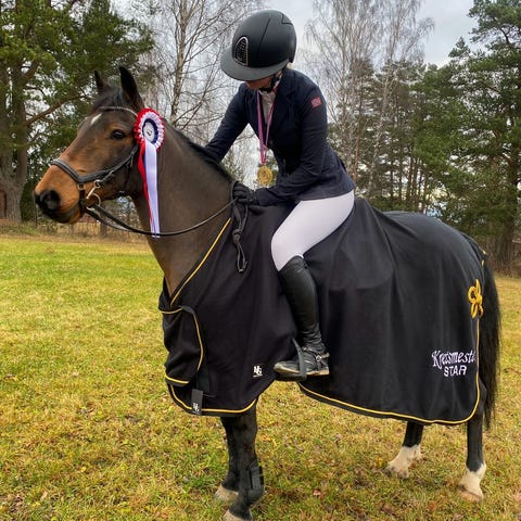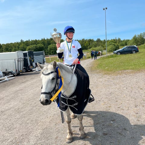Min datter fikk henne når hun var 9år og de begynte å konkurrere raskt etter. De kommer stort sett hjem med plasseringer og de de har startet opp til La sprang og Lc dressur. Det som er flott med denne ponnien er at den har ett tempo men er veldig ridbar for en liten rytter.