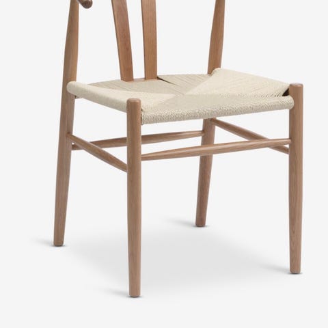 Produktbeskrivelse Hennie-stolen er nå lansert i en oppgradert og mer robust utgave. Den elegante og nette spisestolen i skandinavisk minimalisme er designet med estetiske, myke kurver som gir en komfortabel sitteopplevelse. Stolen har en ramme av massiv eik, mens sete og rygg er i eikefiner. Trematerialet er FSC sertifisert, noe som sikrer bærekraftighet. Spesifikasjoner Materiale sete/rygg: Eikefiner Understell: Massiv eik Farge: Svart Lengde: 51 cm Bredde: 54 cm Høyde: 74 cm Vekt: 5000 g Sittehøyde: 45 cm Montering: Montert Produktmerking: Forest Stewardship Council (FSC) Tilstand Stolen er helt ny uten tegn til slitasje eller skader. Den har en moderne estetikk med en stilren sort finish som vil komplementere ethvert rom.