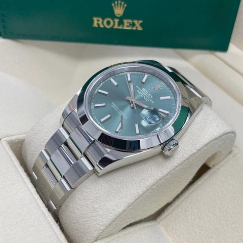 Gullbezel med 48 baguetteslipte lilla ametystmineralsteiner. Vannmotstand 100 m/330 fot.