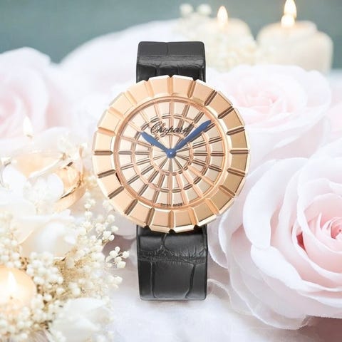 Chopard Happy Sport 274808-5003 damesur med siktbakke. Det mekaniske urverket gr med en nyaktighet p noen sekunder per 24 timer (dette er en gjennomsnittsmling og et yeblikksbilde). Klokken leveres i eske med tilhrende hefter og sertifikat.
