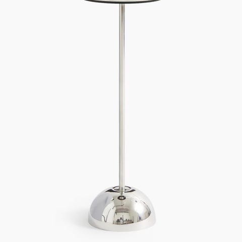 Forkrommet bordunderstell i sandblåst støpejern, søyle og deksel i stål. Må festet i gulvet.