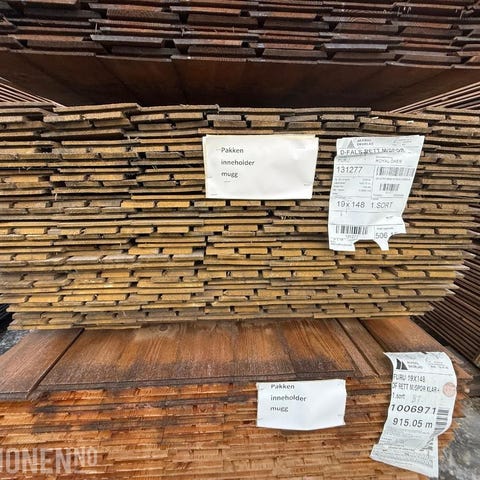 1 pakke kledning d-fals ny m/spor impregnert og beiset oker 19x148 mm
