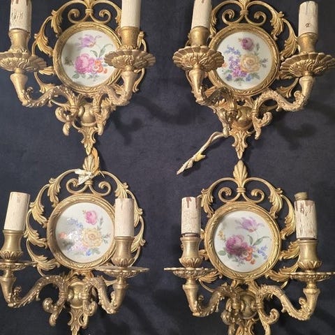 Paar antieke - Vegglampe (2) - Bronse, Glass