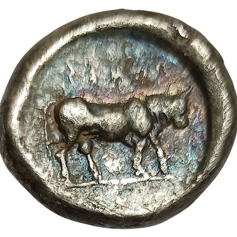 Obv: hode av nymfe til venstre, ifrt hodebnd og tredobbelt anhengrering.