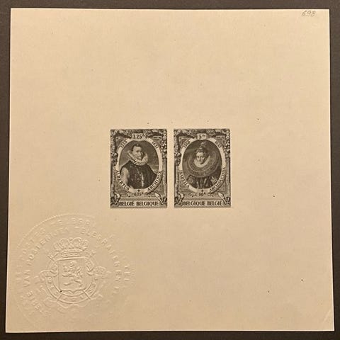 Brev frankert med 20 cent bl, V 6 (Balasse V10) posisjon 145, stemplet P24 (Bruxelles) den 24/08/1850 til Damprmy sjeldent, srlig p grunn av variasjonen luksusutgave.