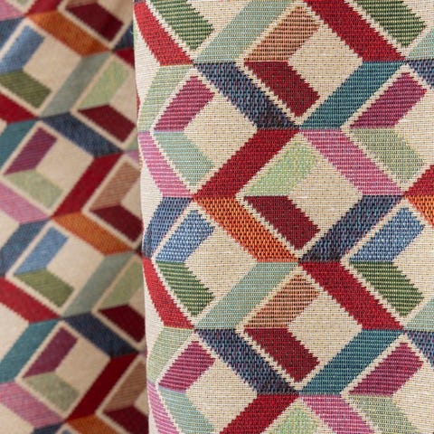 De geometriske motivene som skaper optiske illusjoner, har sine rtter i kunstretningen Op Art fra 1960-tallet, da kunstnere som Victor Vasarely og Bridget Riley brakte visuelle effekter til lerretet som kunne forvirre og fascinere det menneskelige yet. Dette stoffet, med sitt tredimensjonale mnster, ser ut til hente inspirasjon nettopp fra denne kreative epoken, og bringer et stykke av kunstnerisk avantgarde inn i mbeldesignens verden.