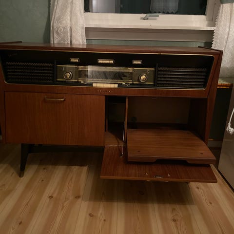 Møblementet er i generelt bra tilstand. Noe slitt i stoffet, spesielt på sitteputene. Ene armlene på en stol er limt og reparert.