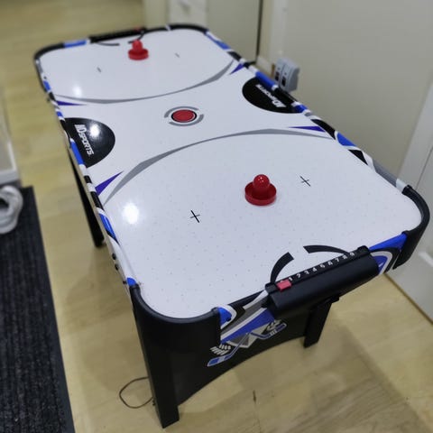Bordet har elektronisk poengteller for enkel oversikt under spillet, samt et luftsystem med UL- og SGS-sertifisert motor som sikrer jevn luftstrøm og optimal flyt. Leveres komplett med fire pushere og fire pucker slik at du kan starte spillet umiddelbart.