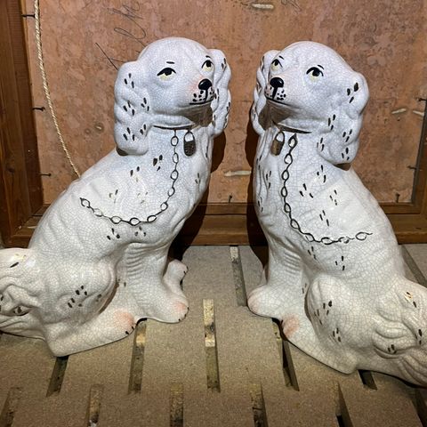 Et par windhunder av jern p en trebase. Vakre landlige og rustikke stykker.