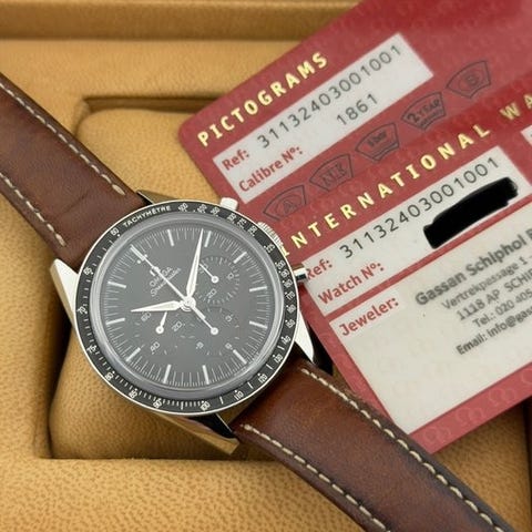 Som en mne bitt av en bever. Dekselet har et design inspirert av jorden, mens stroppen i navy-kaucsjukke med VELCRO-ls tilfrer et snev av romfartseleganse. Klokkeskivene i denne kolleksjonen brer merket OMEGA X Swatch, det ikoniske Speedmaster-logoet og MoonSwatch-logoen. Den buede formen p det biosourcet glasset, den inngravert 'S' i midten som minner om Swatch-logoen, det elegante, sofistikerte sirkulre mnsteret p den ytre ringen av klokkeskiven og p de innfelte sekundskivene, den vinkelformede og harmoniske strukturen p lugsene, og selvflgelig den eksklusive flelsen ved berring av Bioceramic, er fellestrekk for alle modellene. Indeksene, time- og minuttviserne og spissen p sekundviseren...