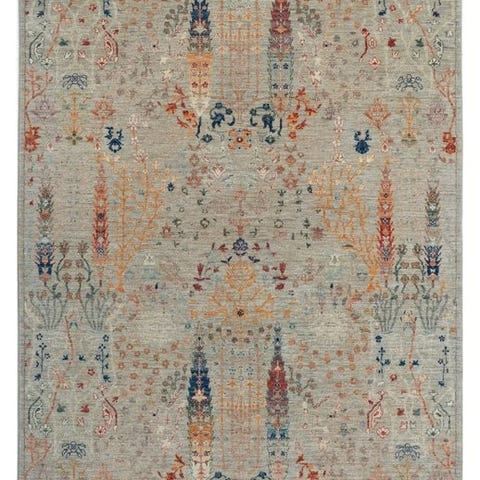 Dette teppet er laget med stor presisjon av den fineste ullen. Den tette og jevne knytningen vitner om mesterlig kvalitet. Den harmoniske fargebalansen med aksenter i beige, bltt og gull gjr det til et ekte hydepunkt for bde klassiske og moderne oppholdsrom.