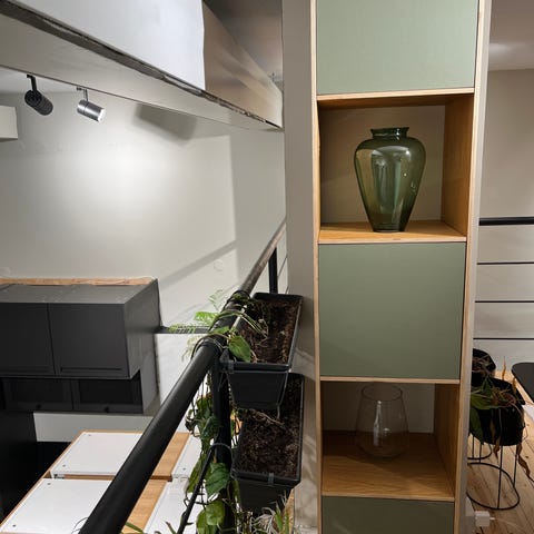 LInoleum i fargen OLIVE.Skreddersydd reol som er høyvalitets materialer. Eksklusiv. Matt flott finish , ingen fingermerker