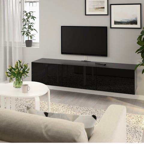 Konsistente komponenter: Med hyller av konstruert tre som holder seg godt, åpnes dørene mykt og smidig. Med sterke rammer og solid støtte gir det en pålitelig løsning for medieutstyret ditt.